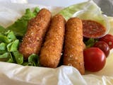 With marinara sauce. Deep fried cheese sticks. Crispy on the outside, gooey on the inside. Served with a side of marinara sauce.